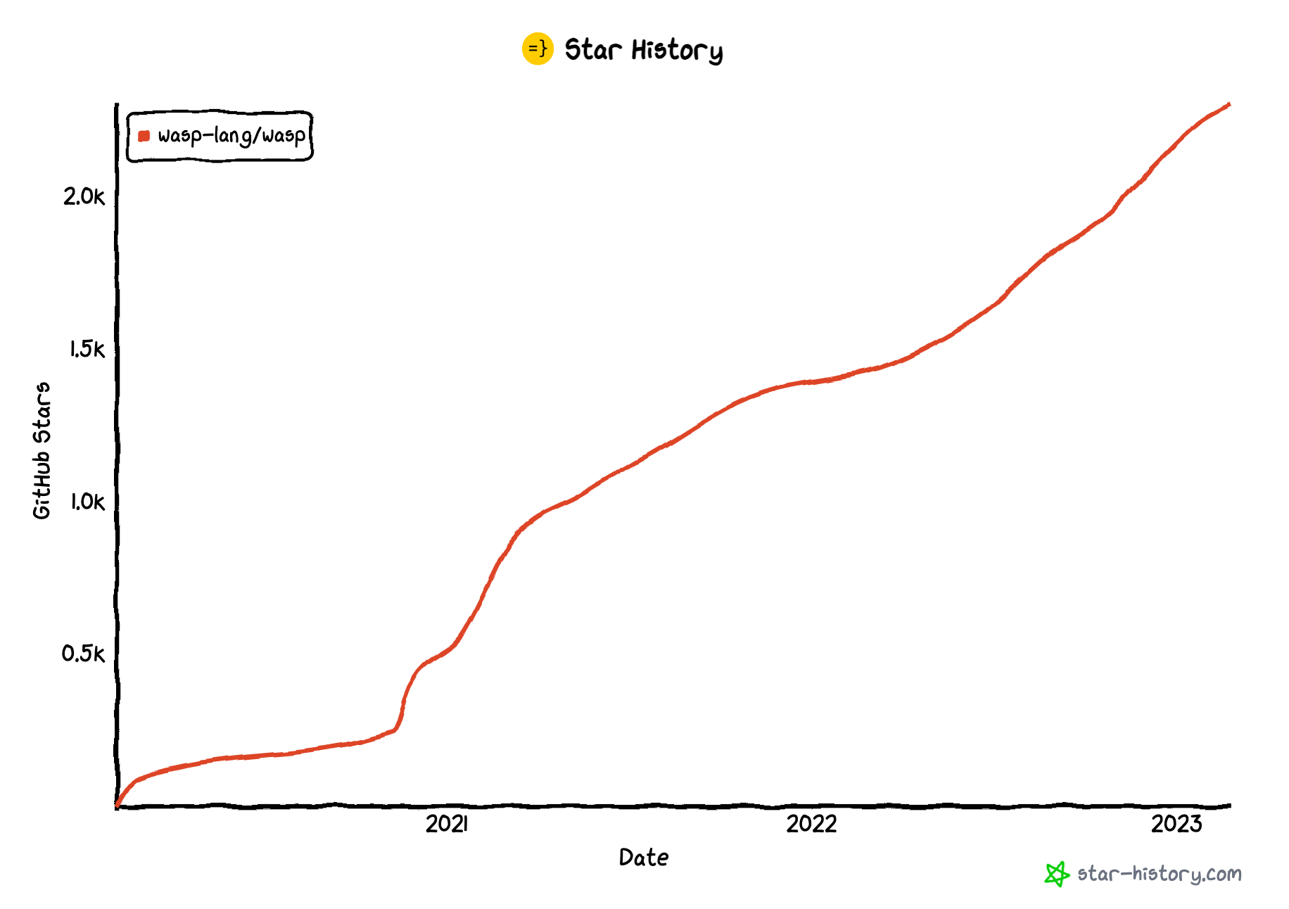 Wasp Github Star Growth - 2,317 βοΈ, woohoo!β