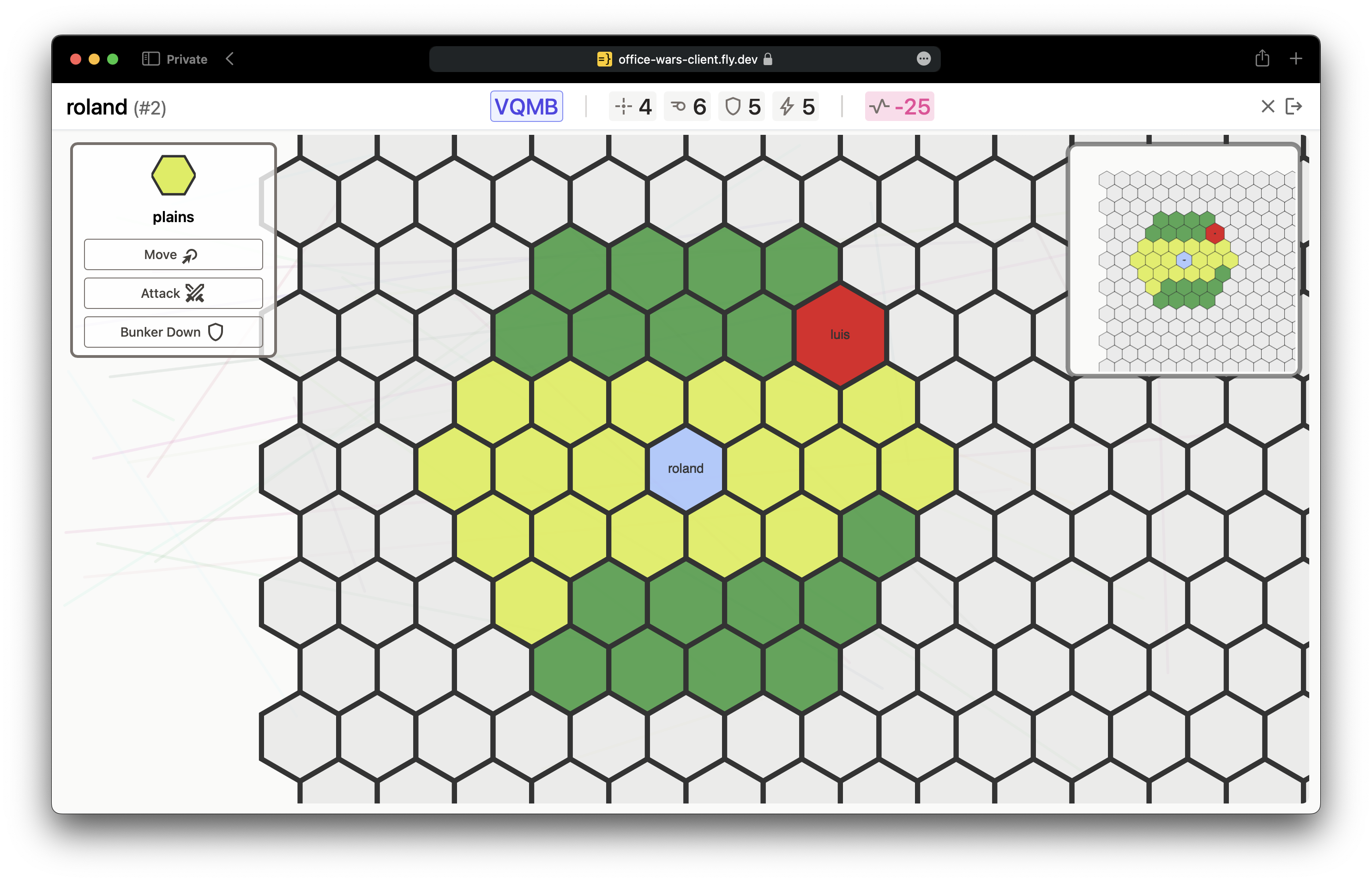 A turn-based, multi-player strategy game where you command your tank across a hexagonal map. A great way to keep your coworkers engaged while you wait for your code to compile!